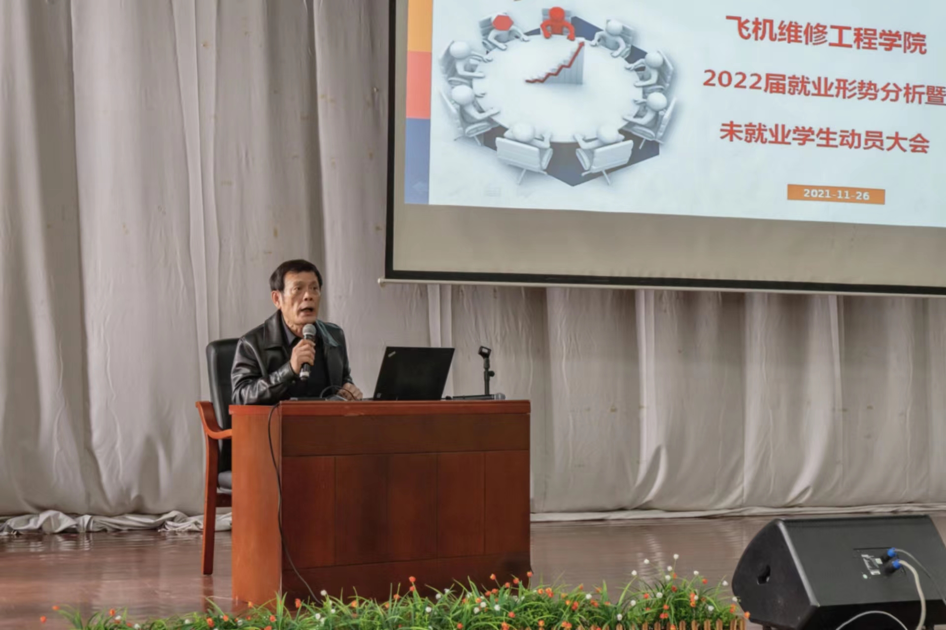 为进一步落实上级部门“六稳”“六保”工作要求,精准做好2022届毕业生就业工作,飞机维修工程学院于11月26日召开2022届就业形势分析暨未就业学生动员大会。学院张建超院长、黄白玲副院长、学工办余振华副主任,全体毕业班辅导员以及2022届未就业学生参加了会议。