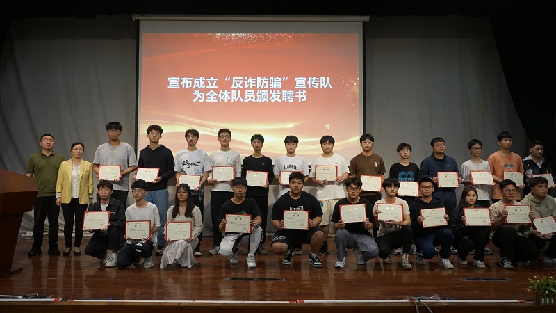 在2023年度“反诈防骗”工作启动仪式上,首先由学工办余振华副主任作了飞机维修工程学院2022年打击防范电信网络诈骗宣传教育工作总结报告,详细总结分析了学院2022年度反诈宣传教育工作开展情况,布置了2023年学院反诈宣传教育工作计划。接着学院黄白玲副院长宣读了2022年度“无诈班级”和“反诈防骗”工作先进老师表彰通报。学院宣布成立“反诈防骗”宣传队,并邀请参会领导现场为全体队员颁发聘书。