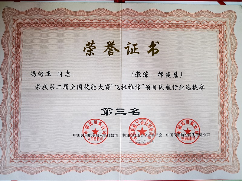 此次竞赛吸引了来自国航、东航技术、南航技术、海航技术、深航、厦航、川航、山东太古、春秋航、顺丰航、中国民航大学、中国民航飞行学院、上海民航职业技术学院、广州民航职业技术学院的14支参赛队共14名选手参赛。本次选拔赛是一次高质量、高强度的比赛,不仅考验选手的飞机维修技术水平,还是对心理素质和身体素质的严峻考验。经过两天半的激烈角逐,由我校飞机维修工程学院的冯浩杰同学,邱晓慧、陈裕芹、邢瑞山三位老师组成的代表队,斩获了第三名的好成绩并捧回铜奖。同时,组委会充分肯定了我校的竞赛组织工作并授予我校“优秀组织奖”。