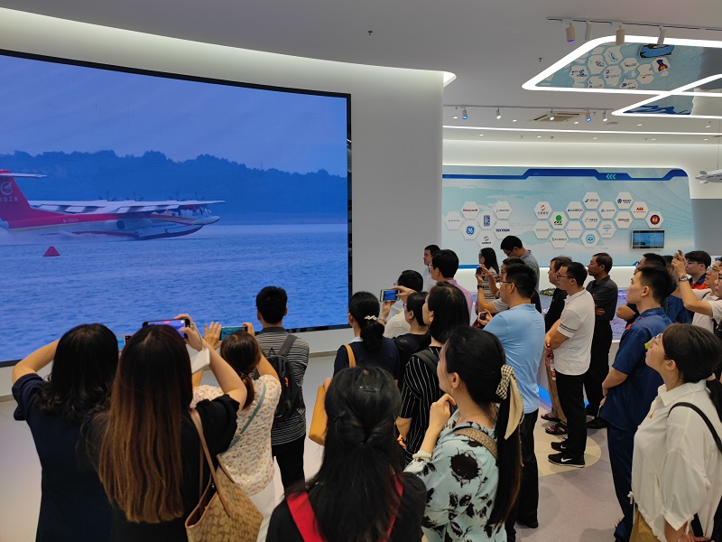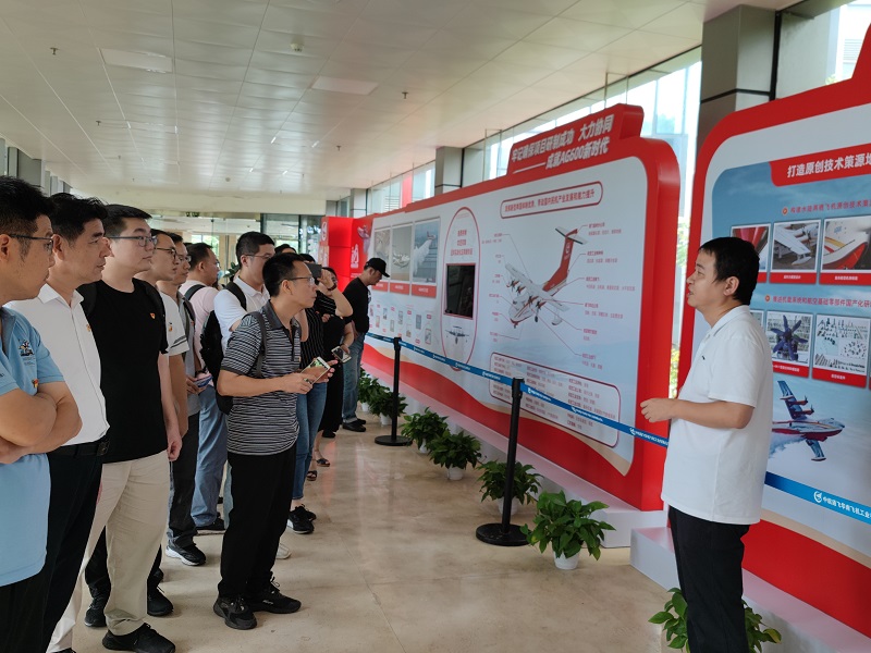 学院师生党员在基地讲解人员的带领下,首先观看了航空工业通飞非凡十年成果展,了解航空工业通飞在重点型号研制、通航产业基地建设、通航研发等方面取得的丰硕成果。随后,在航空工业通飞愿景中心,大家一起回顾了中国通用航空百年发展史,聆听了我国自主研制的大型水陆两栖飞机AG600的研制历程和背后的动人故事,被研发人员奋勇拼搏、夜以继日的航空报国精神深深感动。了解了AG600飞机森林灭火、海上救援、岛礁补给等多维工作场景及其一机多型、水陆两栖、执行特种飞行任务的典型能力。最后,党员们参观了我国唯一可对公众开放的特种大飞机生产线——AG600飞机总装生产线,近距离、全方位了解AG600飞机总装生产过程,更深刻感受到大飞机自主研发、开拓创新的中国力量与航空工业“忠诚奉献、筑梦蓝天”的爱国情怀。