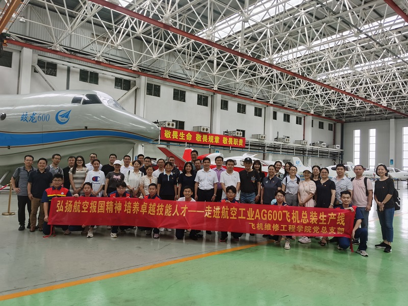 为深入开展学习贯彻习近平新时代中国特色社会主义思想主题教育,引导师生党员坚定理想信念,厚植爱国主义情怀,6月7日上午,飞机维修工程学院党总支部师生党员一行40余人前往中航通飞华南飞机工业有限公司全国爱国主义教育示范基地——航空工业AG600飞机总装生产线开展党员实践活动。