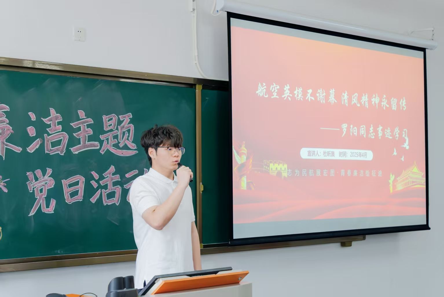 2025年4月9日下午,飞机维修工程学院第三学生党支部在赤坭校区 K4-307教室举行“清风护航蓝天梦,廉洁铸就民航魂”主题党日活动。此次活动聚焦廉洁文化教育,紧密结合民航行业特色,通过丰富多样的形式开展教育,引导学生树立“廉洁从业、自律立身”的价值观。学院党总支方松书记、黄白玲副院长、第三学生党支部教师党员及 2024 级学生代表参加了此次活动。
