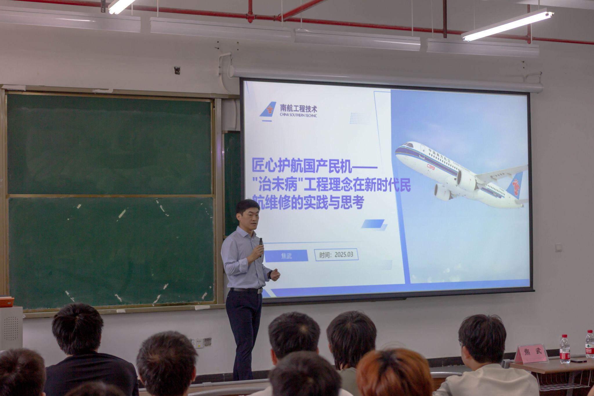 3月26日,飞机维修工程学院在赤坭校区K5教学楼举办“匠心护航国产民机”专题讲座。活动特邀南航工程技术分公司技术管理中心资深工程师、南航机务青年工匠、国产民机项目负责人焦武担任主讲嘉宾,学院师生代表200余人参加活动。