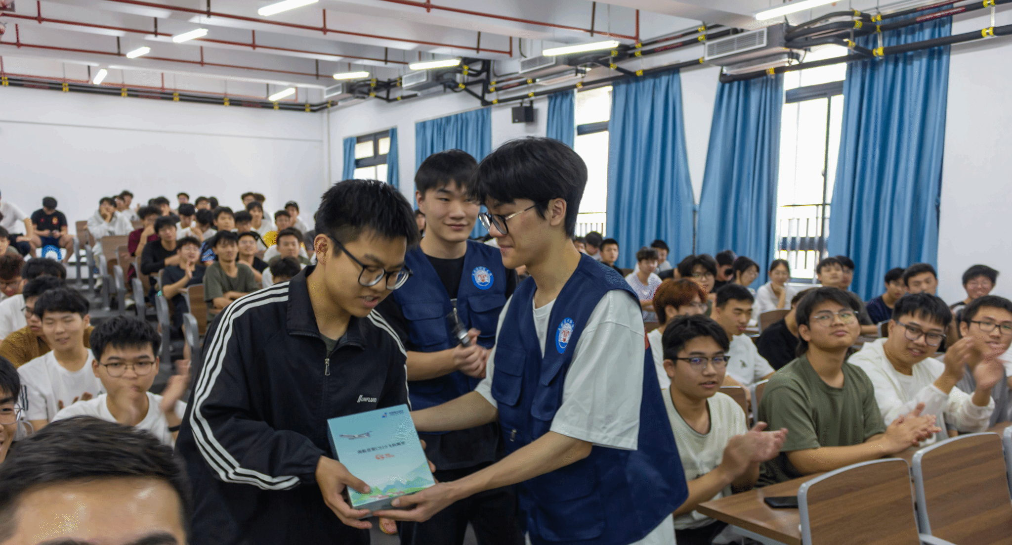 在互动环节,学生们围绕“国产民机维修技术难点”“职业能力培养方向”等问题踊跃提问。焦武工程师逐一细致解答,并结合自身经历鼓励学生要夯实专业基础,树立对国产民机事业的执着追求,不断锻炼形成精湛技术。