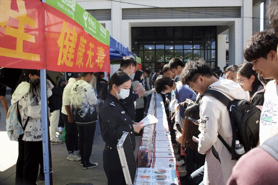 在宣讲活动现场,广东省禁毒科普馆与三元里街禁毒办的工作人员逐一展出了4箱仿真毒品,并携带了VR眼镜,使用VR技术让现场的同学更直观地认识到模拟服用毒品后的人体反应以及毒品给人体带来的危害。此外,现场的工作人员也积极热情地向参展师生派发宣传手册,耐心讲解禁毒的知识要点,让大家对毒品有了更深层次的认识。
