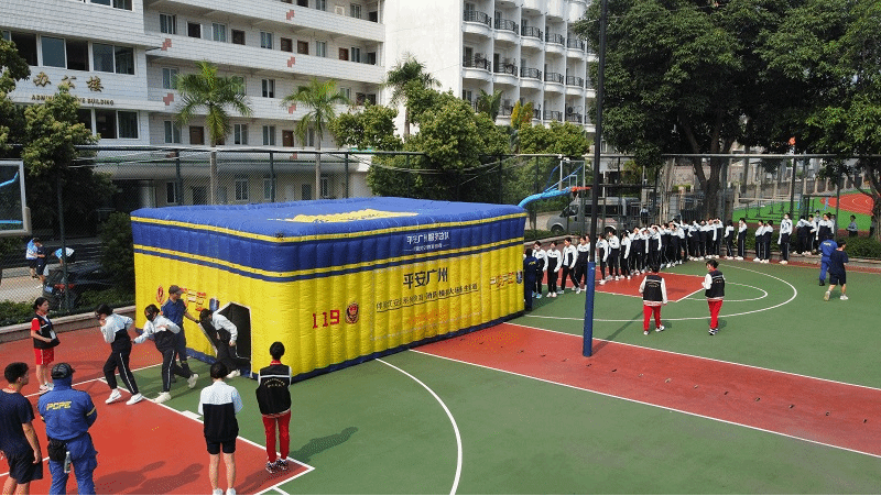 本次活动分为理论培训和疏散演练两部分,理论培训通过直播授课的形式,向师生普及了消防法律法规,讲解了生活中常见火灾隐患排查与防范,演示了火场逃生的正确方式和动作要诀,以及如何正确使用灭火器材扑灭初起火灾。理论培训结束后,随着模拟警报的鸣响,火灾疏散逃生演练正式开始,同学穿过浓烟,按照计划路线,有序地从各自所在宿舍迅速撤离到田径场集合列队,并在培训教官的指导下,逐一进行了模拟火场烟道逃生体验。