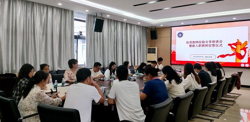 座谈会上,优秀教师代表分享了教学方法创新、科研项目申报、学生管理工作等方面的经验。其中,韩中华老师介绍了科研项目申报的要点和案例,臧雪梅老师分享了指导学生安检证考证的教学方法,邓思健老师分享了学生实习就业管理工作中的经验。随后教师们就如何加强教学改革与科研创新、更好地利用数字化技术提升教学质量,以及加强师生互动等问题进行了深入探讨。在新入职教师宣誓环节,兰超、张奇、宋萌、何明洁、潘琳琳等五名新入职教师进行宣誓,争做新时代“四有好老师”。现场教师们积极发言探讨,针对教学科研、学生管理和专业建设交流互鉴,积极提升教学科研和学生管理能力。