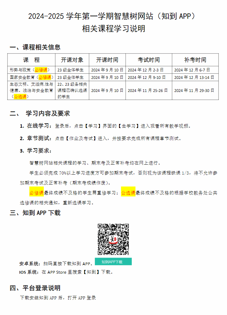 2024-2025学年第一学期智慧树网站(知到APP)相关课程网络学习说明