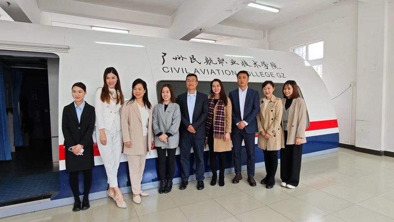 1月9日,香港航空副总裁、新翔(香港)董事长湛贵才率领的代表团一行9人莅临我校,就粤港校企合作及大湾区民航协同发展展开探讨。代表团首先参观了空中乘务学院的教学设施,如飞机模拟舱和体能训练室等,对我校空乘空保专业的培训能力和学生精神风貌给予了高度评价。
