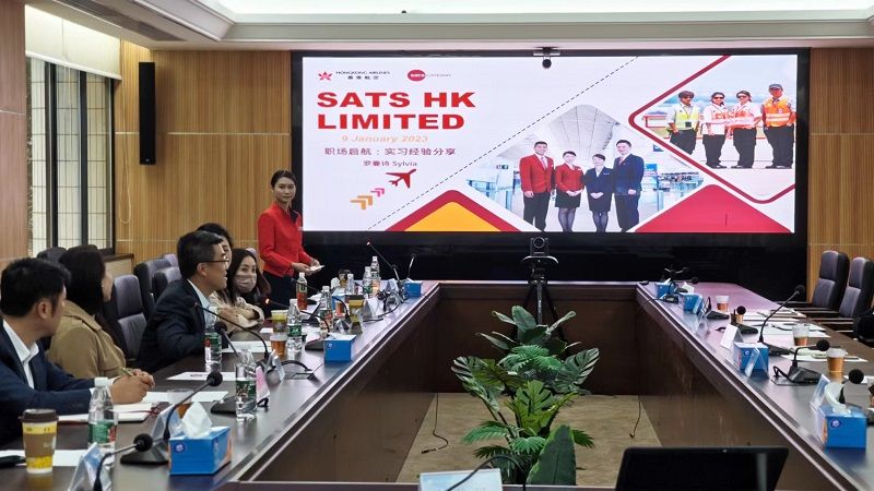 香港代表团分别介绍了香港航空公司和新翔(香港),我校首批赴新翔(香港)实习生代表罗曼诗同学分享了她在香港实习的成长经历。香港航空副总裁、新翔(香港)董事长湛贵才在会谈中表示,香港民航业正处于快速复苏阶段,人才缺口较大,对乘务员和地服人员的需求尤为迫切。为此,他希望双方尽快开展校企合作,构建长期合作伙伴关系。双方在会谈中探讨了签署合作备忘录、学生赴香港实习签注和工签、“订单班”培养、联合培训等合作方向。双方将继续保持紧密联系,在民航专业人才交流与人才培养领域加强合作,为大湾区民航协同发展作出贡献。