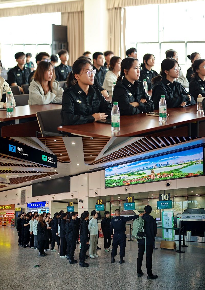 2024年12月4日,广州民航职业技术学院航空港管理学院开展了一场别开生面的就业服务月系列活动——“沉浸式访企行”。本次活动由航空港管理学院学工办、教务办、实验实训中心的负责人、相关辅导员以及2023级、2024级各专业共计31名学生共同参与。一行人前往惠州平潭机场,进行为期一天的职业体验活动,旨在进一步了解民航业的发展现状与未来趋势,拓宽学生的就业视野。