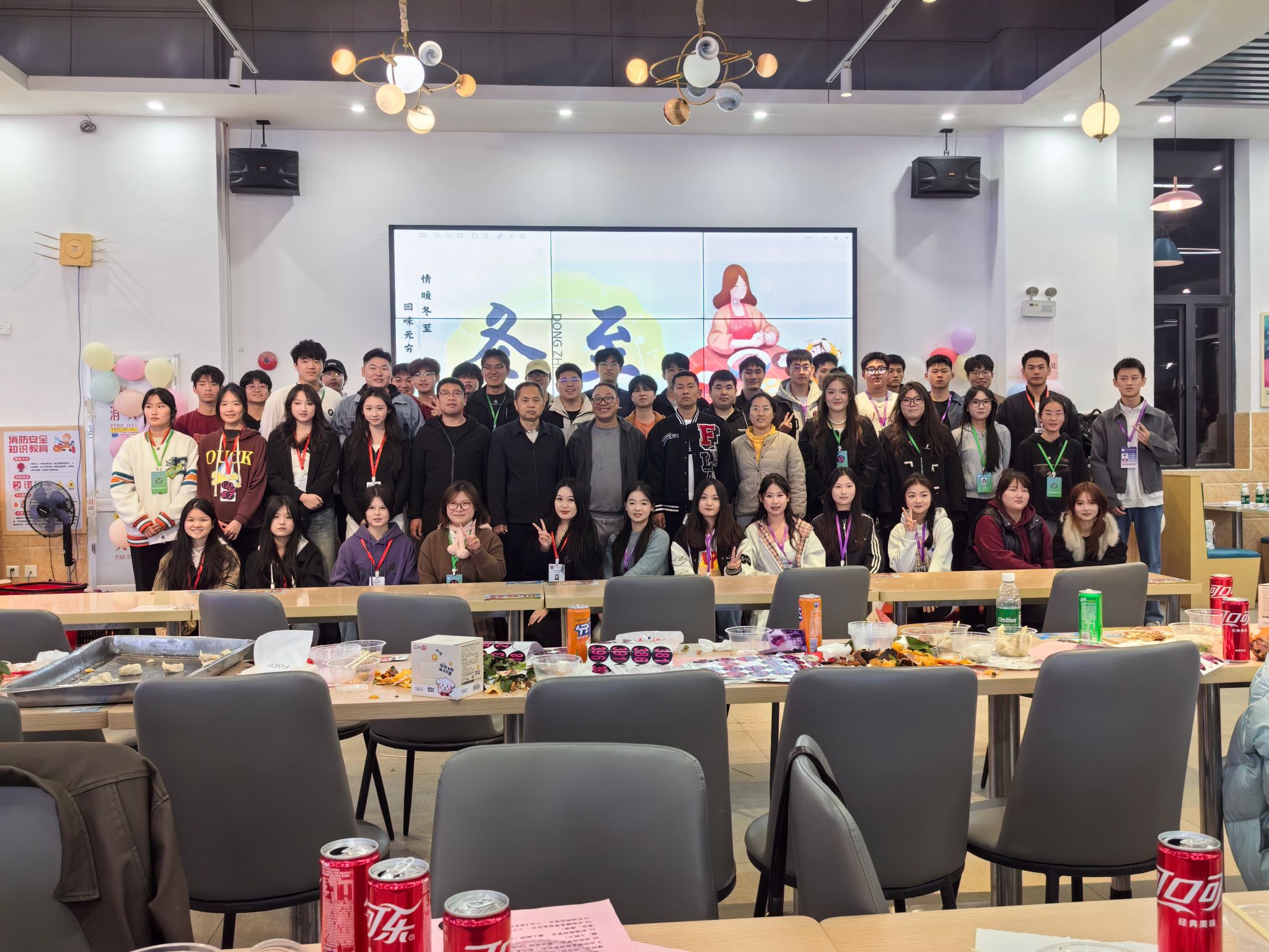参观完食堂后,学生们在赤坭校区食堂二楼宽敞明亮的就餐大厅分组围坐,取皮、放馅、封口,形态各异的饺子纷纷成型。其间,学生们不仅掌握了包饺子技巧,更体会到团队协作的欢乐与温情,彼此交流心得,气氛热烈融洽。许多同学坦言,这是首次亲手包饺子,饶有趣味,也深切领略到传统文化的魅力。此外,同学们还带来了精彩纷呈的文艺表演与互动游戏,让师生们在轻松愉悦的氛围中,提前度过了一个难忘的冬至,尽享节日的温暖与欢乐。