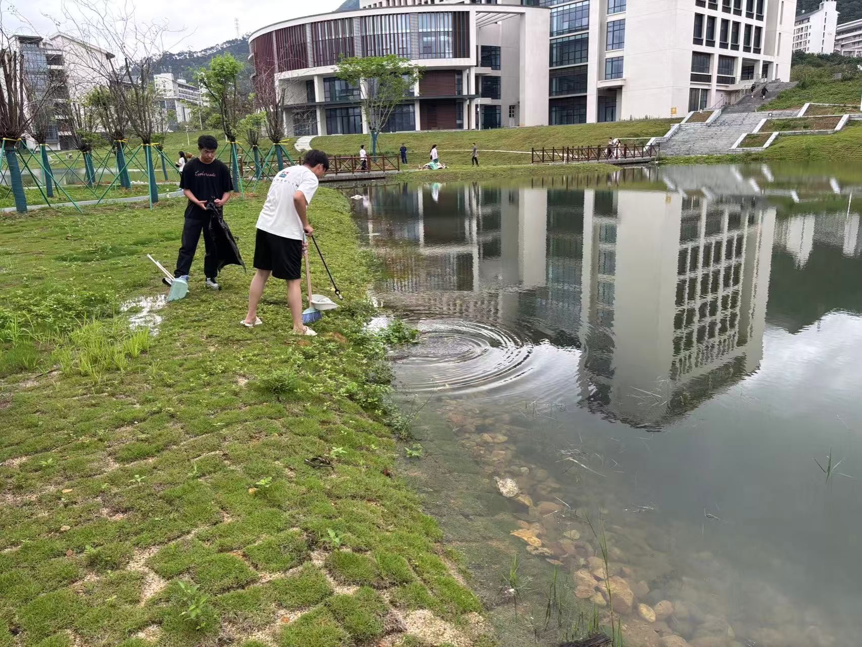 人工湖作为校园生态景观的重要组成部分,是师生们休闲放松、亲近自然的好去处。本次清理行动,聚焦“三全育人”理念,将劳动教育与实践深度融合,既是优化校园环境的“先手棋”,也是学生劳动教育的“实战场”。通过真实场景中的实践,让学生在“做中学”,在协作中感悟责任与风险,在汗水中体会劳动者的艰辛与荣光。这次活动,显著改善了人工湖的水质,提升了景观质量,让“崇尚劳动、实干奉献”的信念在校园蔚然成风。