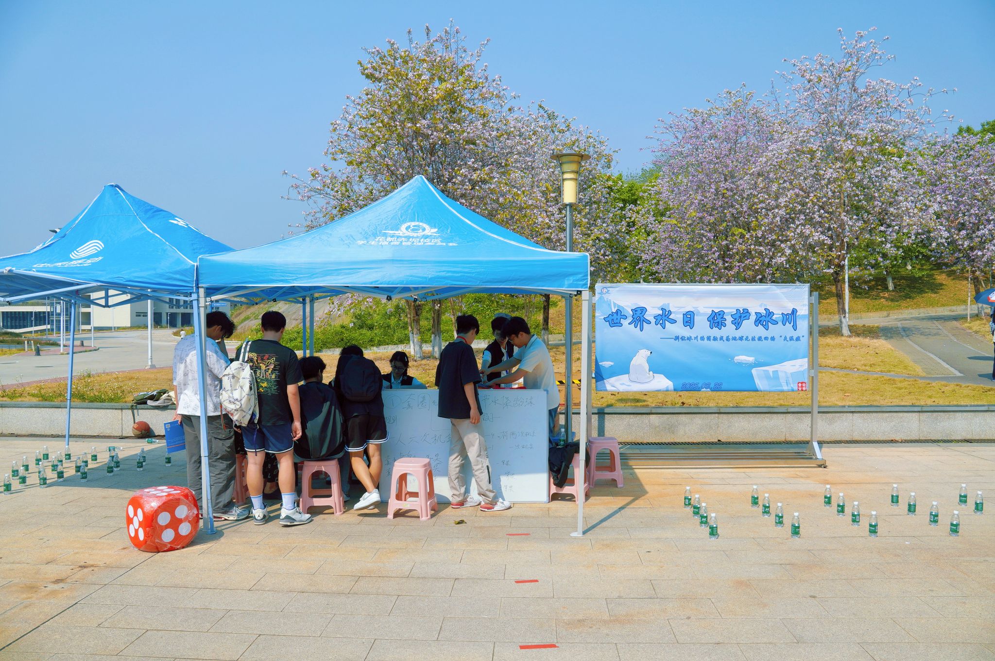 为深入学习贯彻习近平生态文明思想、习近平法治思想和习近平总书记关于治水重要论述精神,积极响应联合国“冰川保护”主题及我国“推动水利高质量发展,保障水安全”的号召,学生宿舍管理委员会在白云机场校区和赤坭校区食堂操场组织开展了“惜水、爱水、节水,从我做起” 和“守护冰川,珍惜每一滴水”主题宣传活动。活动通过寓教于乐的互动形式,向全校师生普及节水理念,倡导绿色生活方式,吸引了500余名师生参与。
