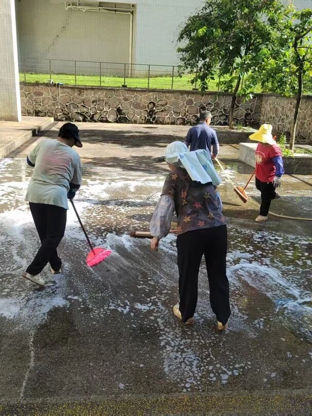 ✅ 开展爱国卫生运动:三校区物业全员对校园展开“地毯式”排查,重点检查花盆托盘、闲置容器、下水道口、排水沟拐角等易积水区域,逐处翻盆倒罐、倾倒积水,从根源上减少蚊虫产卵环境,切断蚊媒滋生链条。