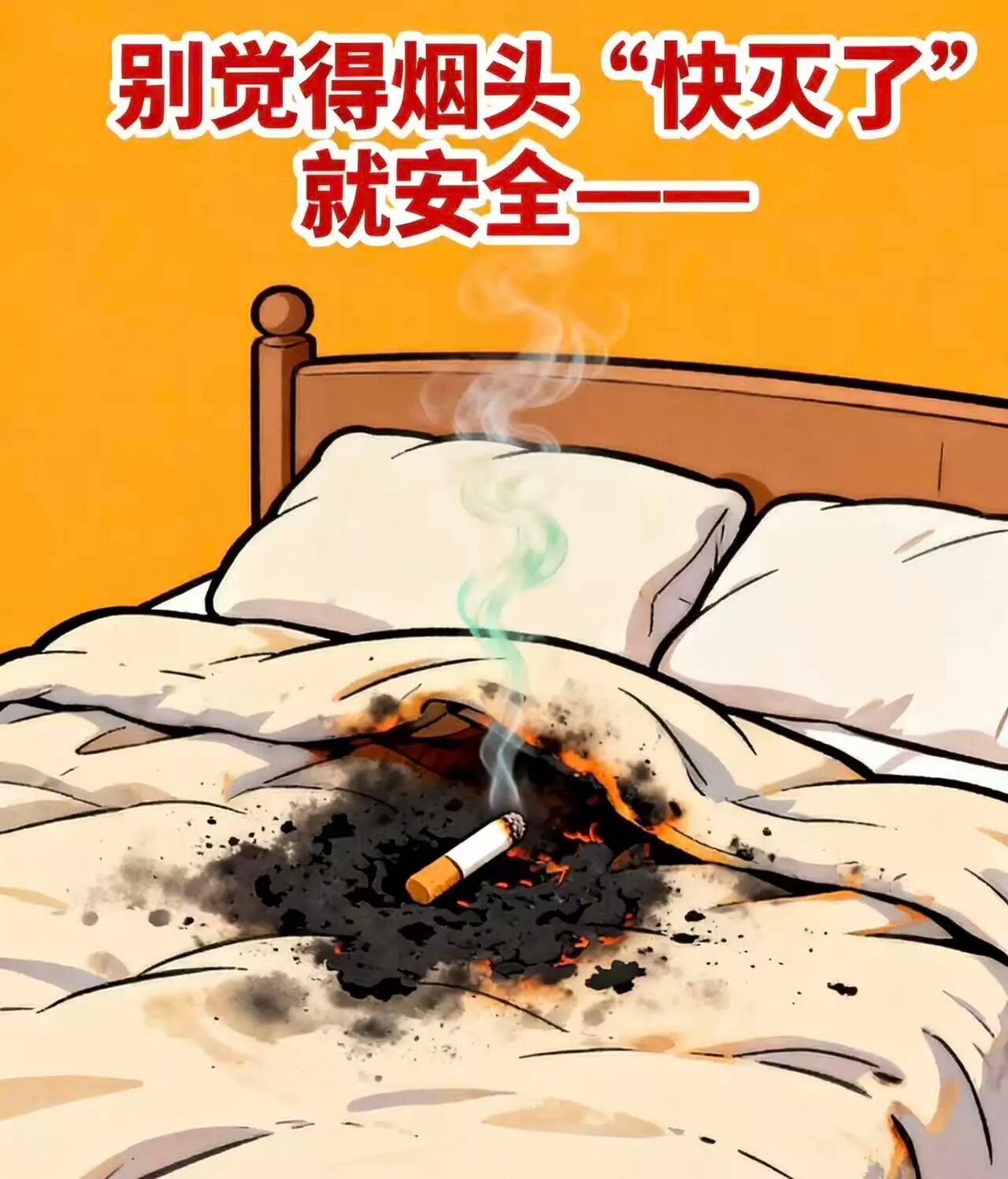 别觉得烟头“快灭了”就安全——香烟燃烧时,中心温度能达到800℃,而宿舍里的纸巾、快递盒燃点仅130℃左右,被褥、衣物的燃点也不过200℃。