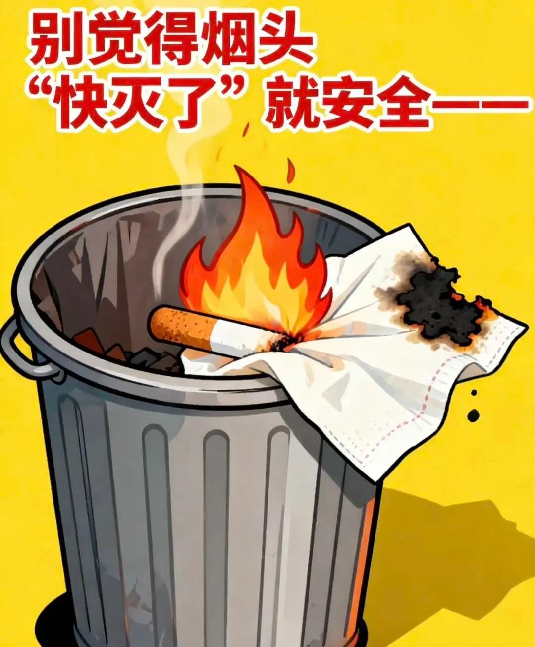 吸烟后务必把烟头在烟灰缸里拧到完全熄灭(别只掐一下),烟灰缸用带盖的,绝对别丢垃圾桶、别弹窗外。
