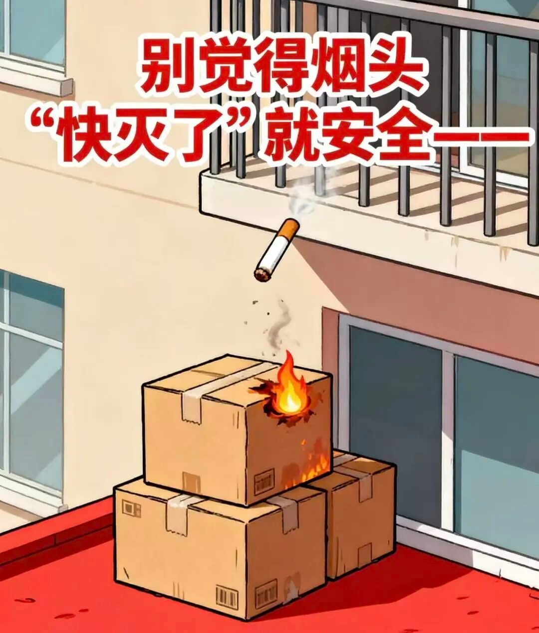 去年某高校就发生过真实悲剧:一名学生在宿舍阳台吸烟后,随手把烟头弹到了楼下。没熄灭的烟头刚好落在堆积的快递纸箱上,火势借着风势迅速蔓延,短短十几分钟就烧穿了半栋宿舍楼,数十间宿舍的书本、电脑、生活用品全被烧毁——而这一切的起点,只是“弹烟头”那一秒的侥幸。“就这一次没事的”“烟头都快灭了”——所有火灾悲剧的开头,都是一句“没关系”。