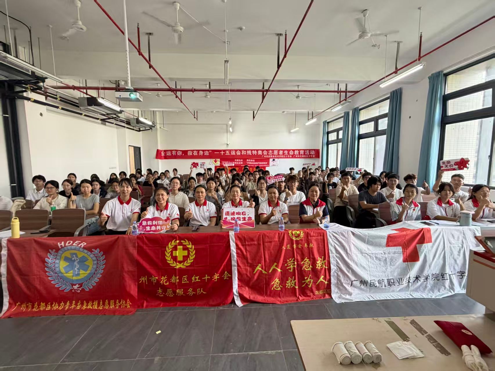 从后勤守护到青春接力,校园安全防线正持续筑牢!继面向后勤第三方员工的急救培训圆满落幕,11 月 8 日,这场关乎生命的 “必修课” 正式迎来学生专场 —— 当时间与生命竞速,当知识与勇气并肩,现场花都区红十字会秘书长黄永勇莅临指导,90 名学员历经区红会资深讲师的专业授课、市红会的严格考核,全员顺利通过认证,斩获 “救护员证”,成为校园里崭新的 “生命守护星”!