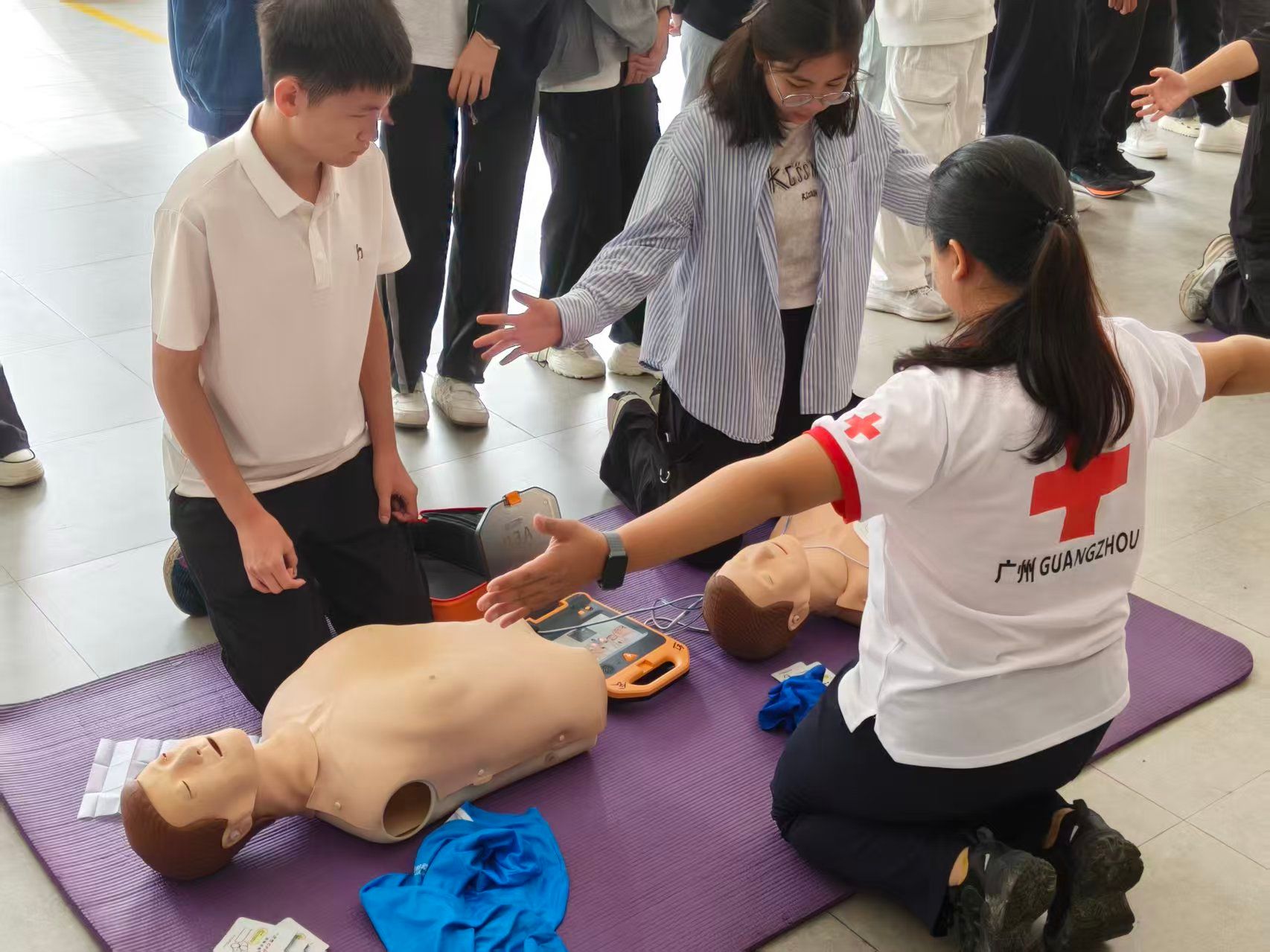 先生,先生!你能听到吗?”——培训现场,模拟呼救声此起彼伏。从判断意识到胸外按压,讲师将每个动作细致拆解。当了解到AED这个“救命神器”操作智能直观时,许多同学感叹:“原来关键不是技术,而是站出来的勇气。”