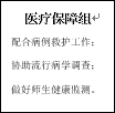 4.医疗保障组:组织院前紧急救护,配合专业救护人员救护工作;协助当地疾控机构开展的流行病学调查、采样、密切接触者筛查等工作。指导做好师生的健康监测工作,做好每天的晨午检和因病缺勤病因追踪登记,对缺勤者要逐一登记并及时追踪,查明缺勤原因;配合卫健部门做好集中医学观察人员的健康监测工作。指导师生做好正确防护。每天保持与校领导、疾控部门和教育主管部门进行信息沟通,上报学校最新情况。