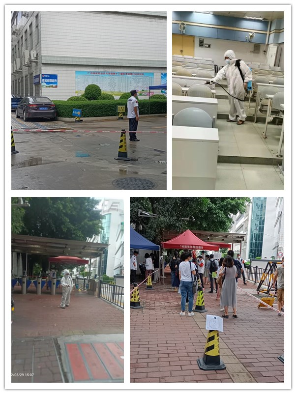此次考场设置在机场路校区,我处配合人事处进行场地布置打扫,检修空调、风扇等水电设施设备,为考生打造良好环境;提前规划考生入校流程、路线,增派人员在校门处核验考生健康信息,查看入校申请,确保来校考生符合入校条件。同时,在入校路线沿途安排人员加强警戒,引导考生在“校门—考场”两点一线活动,考后对涉及的室内室外场地进行消毒,极大程度保证校园的安全和正常秩序,减少外来人员对校内师生的影响。此外,卫生所安排医生在场为考生提供医疗保障,设置集中医学观察点和临时隔离点;饮食服务中心为近70名工作人员做好餐饮供应。