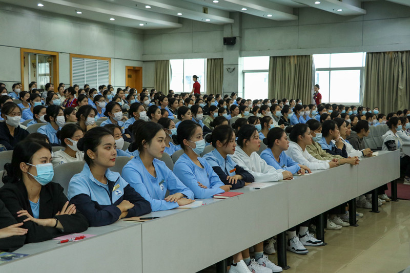 高佩佩女士有着长达15年的飞行经历,凭借飞行中积累的经验和丰富的阅历,她紧紧围绕熟练掌握面试技巧、熟知航空应聘需求、熟悉自身存在短缺进行演讲,为学生讲述成为一名优秀且专业的乘务员所应具备的能力,并详细说明航司应聘流程的标准。她认为面试技巧尤为重要,包括面试妆容和个人的仪容仪表,需要学生做足功课,而不是敷衍了事。她为新生分析并讲解多方面的实操案例,并同时向空乘专业的学生提出希望:一是要扩大知识面,在校努力学习科学文化知识,提升专业技能;二是要把所学专业知识和社会需求相结合,注重实操技能的培养。最后是现场答疑环节,高佩佩老师以幽默风趣的语言回答了学生关于航司面试、培训等问题,让学生受益匪浅。