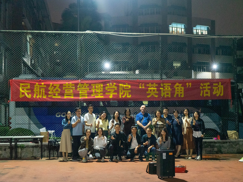 为给学生搭建施展才华、提高英语能力的平台,让学生能够在轻松愉快的气氛中,通过交流与互动提高学生英语口语水平,11月3日晚,民航经营管理学院在机场路校区篮球场北侧举办“英语角”活动,民航经营管理学院李爱琴副院长、学工办肖静主任、林巧珠副主任、空保教研室主任白文宇老师、空乘教研室主任杨丽明老师、贺丹老师、外教Brian以及全体辅导员参加了此次活动。