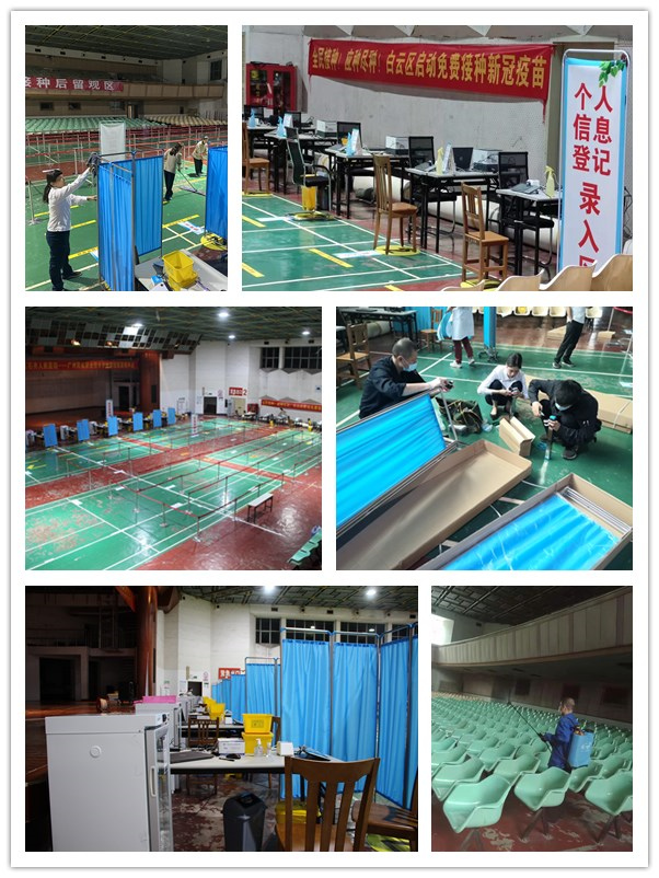 后勤处按照接种医院对场地的要求,选定体育馆作为临时接种室和观察室,并在物业、保安人员的协助下,提前做好全场馆清洁和消杀,确保场地干净卫生、消毒到位。之后按照“六步流程”布置场地,利用隔离带形成通道闭环,设置候诊区、登记区、接种区、留观区、冷链区等六个区域,每个区域都张贴统一指示标识。最后通过模拟接种流程方式对各环节进行微调,保证各区域布置合理,流程顺畅。按照计划进度,师生们将在接下来几天分时段、分批次完成首针疫苗接种,在此期间,物业保洁人员将继续做好接种场地的清洁卫生和通风消毒,确保机场路校区第一阶段接种工作的顺利进行。