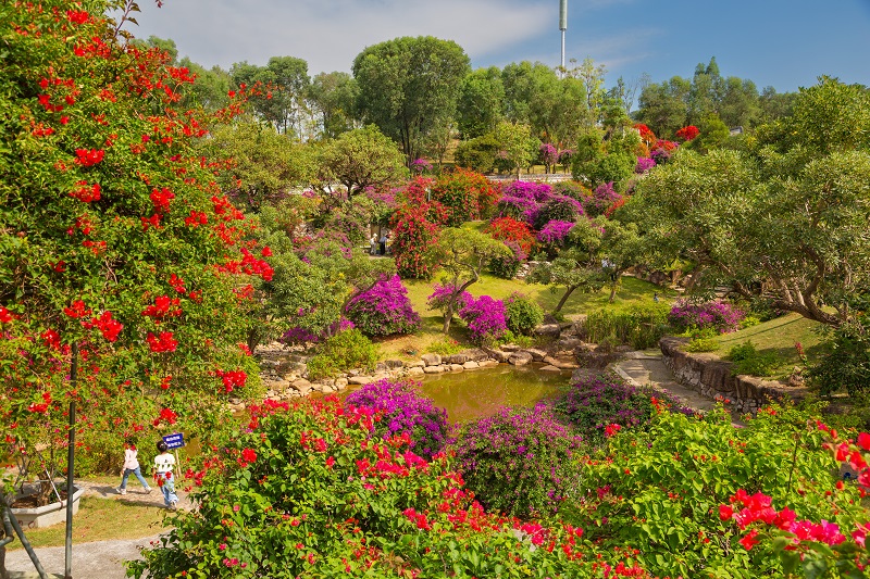 马岭观花植物园位于广州市花都区狮岭镇,是一个集观赏、休闲、科普于一体的综合性植物园。步入园区,各类花卉争奇斗艳,尤以五颜六色的三角梅最为引人注目,它们斑斓多姿,汇成一片绚烂的花海,令人叹为观止。随着秋季的到来,这些三角梅也迎来了最佳观赏时节,吸引了大量游客前来打卡拍照。老师们漫步其间,尽情领略五彩斑斓的花卉奇景,深刻感受大自然的魅力。同时,网红有轨小火车、沉浸式动物体验区等各种有趣的互动项目,也为教师们的体验增添了许多乐趣。在鹿鸣半岛,大家近距离与小鹿拍照、亲手喂食,体验与自然的和谐相处。此外,孔雀翠屏、松鼠森林、鹦歌燕舞等动物园也是孩子们的最爱,通过与小动物亲密互动,增长见识,乐趣无穷。