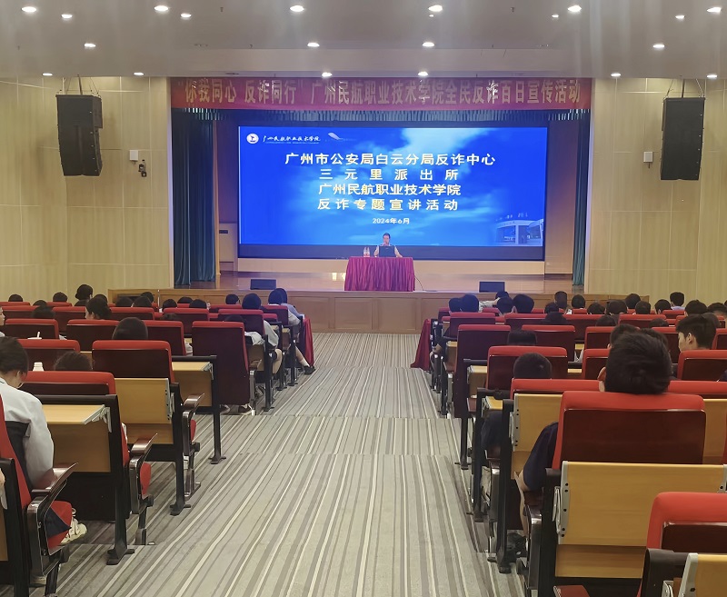 6月25日下午,学校邀请三元里派出所所长、白云反诈中心宣讲员、社区民警等人员,在机场路校区百汇楼报告厅开展了一场防范电信网络诈骗专题讲座。空中乘务学院2022级23个班共289人参加了本次讲座。
