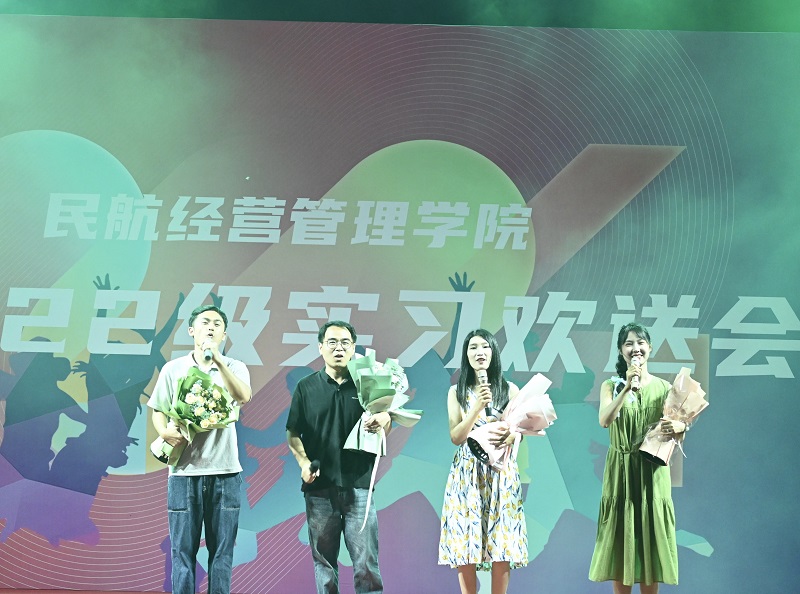 欢送会伊始,蔡昌院长对全院实习生表达深切的祝福与美好祝愿,对老师们的无私奉献与付出表示肯定与感谢。蔡院长从“修身修心修学问,成人成才成栋梁”谈起,回顾了民航经营管理学院学子在校期间的亮眼表现,鼓励在场学子努力成为“有志向、有意识、有智慧、有胸怀”的人。他深情嘱托2022级实习生志存高远、脚踏实地,不惧风雨、坚韧不拔,在实习岗位上始终保持精神上的主动,把自己的理想同祖国的前途、把自己的人生同民族的命运紧密联系在一起,用实际行动传承和弘扬当代民航精神。