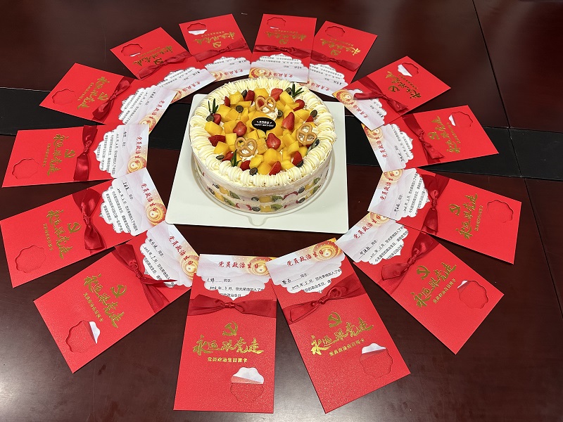 “我志愿加入中国共产党,拥护党的纲领,遵守党的章程,履行党员义务……”面对鲜红的党旗,第一学生党支部纪检委员林志耿同志领誓,全体党员庄严宣誓,重温入党时的初心和使命。随后,党支部为每位党员送上了精美的政治生日贺卡,举行了温馨的切蛋糕仪式,寓意党的关怀如春风化雨,引导和激励党员牢记第一身份、筑牢信仰之基、永葆奋斗本色。