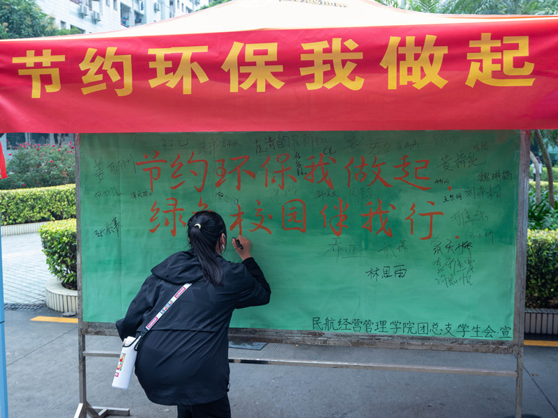 3月5日,为积极响应学校“绿色学校”创建行动,增强新时代青年学子的环保意识、节约意识,民航经营管理学院在机场路校区开展了“绿色校园光盘行动”活动。