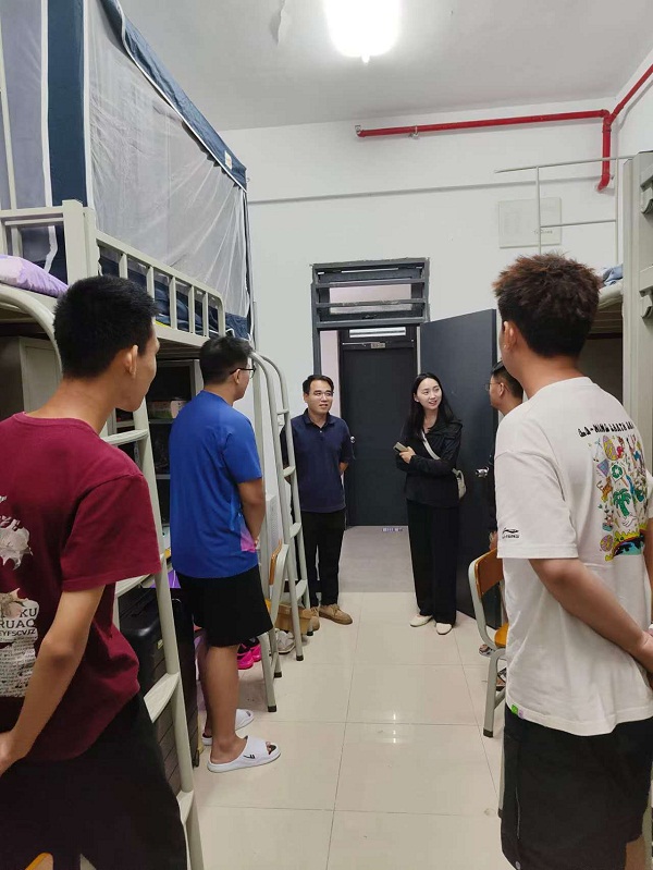 为深入了解2024级新生的住宿与生活状况,加强与新生之间的沟通联系,民航经营管理学院在王锋副院长的带领下组织学工办人员、新生辅导员于9月11日报到当晚逐一走访了新生宿舍,为新生们送去了学院的关怀与问候。
