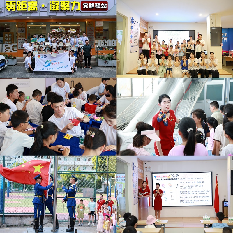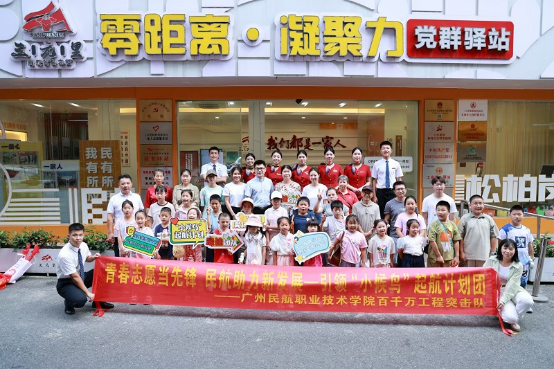 为进一步深化广东省青少年“百千万工程”突击队行动,空中乘务学院结合专业特色,主动对接三元里街松柏岗社区外来务工者“小候鸟”群体,开展了为期5天的实践活动,包括飞行科普课堂、音乐梦想之旅、非遗手工艺术之旅等一系列丰富的暑期研学活动,带孩子们一起探寻航空飞行中的科学奥秘,激发了他们对航空事业的向往,同时也让他们感受传统文化艺术的魅力。