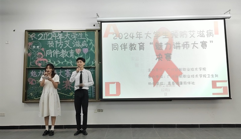 为贯彻落实《“健康中国2030”规划纲要》,选拔优秀的同伴教育大学生讲师参与学校预防艾滋病宣传教育活动,我校于5月15日下午在赤坭校区成功举办2024年大学生预防艾滋病同伴教育“魅力讲师大赛”决赛。