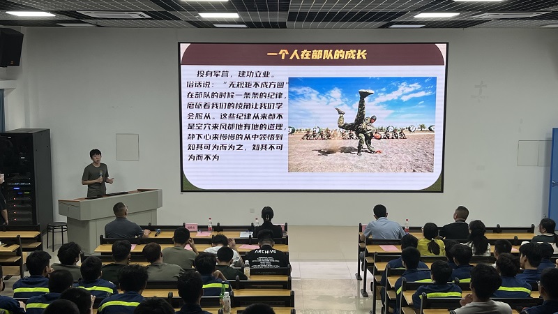 本次座谈会以“退伍不褪色 建功新征程”为主题,在座谈会上,四位优秀退役学生代表依次分享了他们在军营生活中的点点滴滴以及个人的先进事迹,介绍了自身在部队中的成长与收获、在艰苦训练中的坚持与拼搏以及在军营生活中所学到的责任与担当,让在场的师生深受鼓舞和感动。