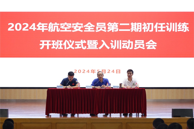 5月24日晚上7点,2024年度航空安全员国航初任训练开班仪式在我校机场路校区举行。空中乘务学院张力平院长、学工办王通副主任、空保教研室白文宇主任、训练主管李柏健和辅导员王圣夫、郑莎莎等老师出席开班仪式。