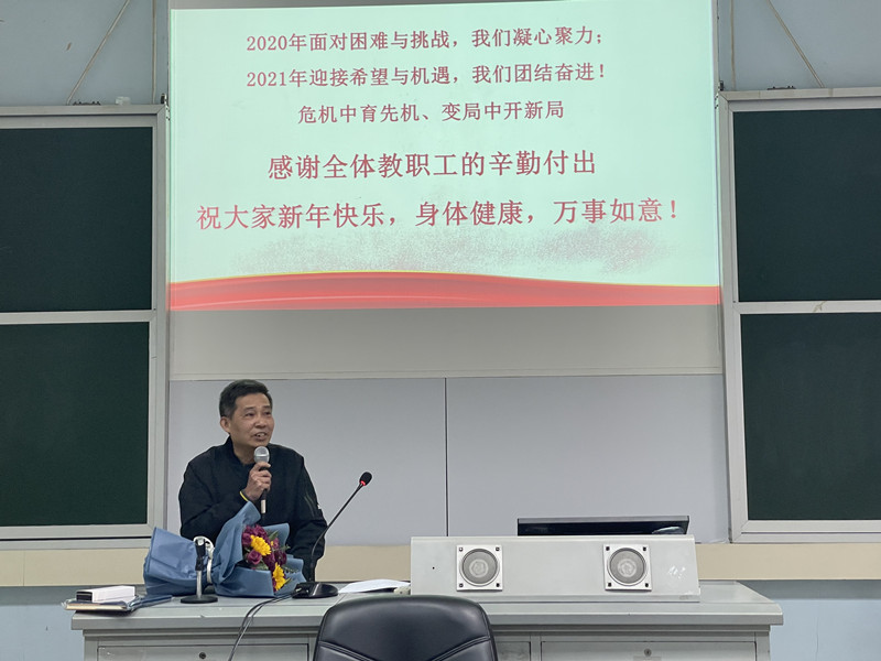 12月30日下午,民航经营管理学院在机场路校区综合楼阶梯一教室举行了退休教师欢送仪式,欢送王德涛老师光荣退休,全院教职工共同见证了这一温馨感人的瞬间。活动由民航经营管理学院分会主席、党总支书记蔡昌同志主持。