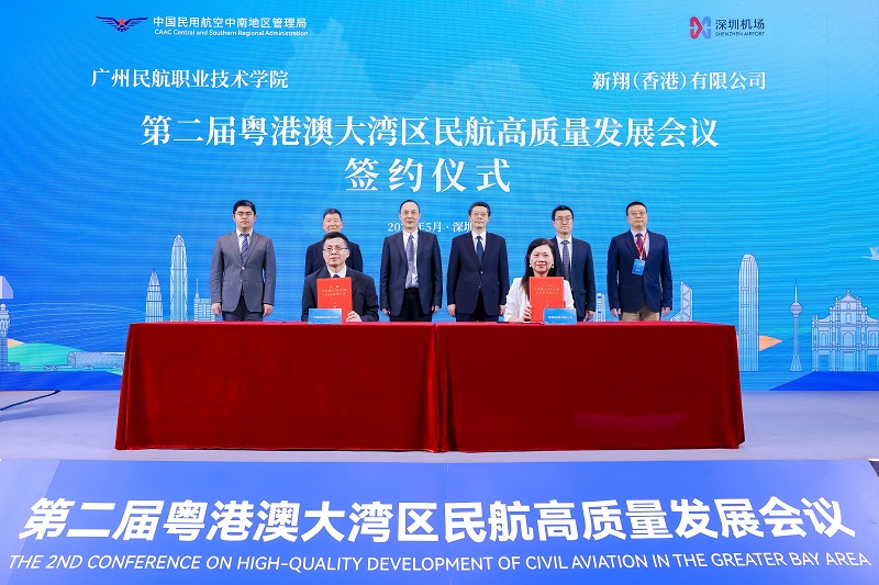 粤港澳人才双向流动是大湾区民航深度融合的必然趋势,也是打造大湾区高水平人才高地的必然要求。会议期间,学校分别与香港国际航空学院、新翔(香港)有限公司签署协议,与香港国际航空学院围绕推进人才培养、教师实践和学生实习、人才交流共享、职业技能培训等方面开展合作,与新翔(香港)有限公司围绕人才联合培养、教师实践和学生实习就业基地共建、人才交流共享、科学研究、校企培训、举办各类技能竞赛等方面开展合作,进一步提升粤港澳大湾区民航人才培养合作水平,加快大湾区民航职业教育产教融合,助力新质生产力,服务低空经济。