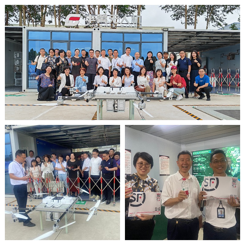 午后,调研团队在解校长的带领下继续前往丰翼无人机运营中心调研考察。丰翼无人机运营中心是无人机应用领域的创新引领者,专注于无人机配送物流等业务的拓展和实践,发布了全球首个无人机物流产品。在运营中心,老师下单体验了无人机物流产品,目睹了无人机配送矿泉水的快捷与便利。这一新兴领域的展示让大家对未来航空物流行业和低空经济的发展充满了憧憬和期待。