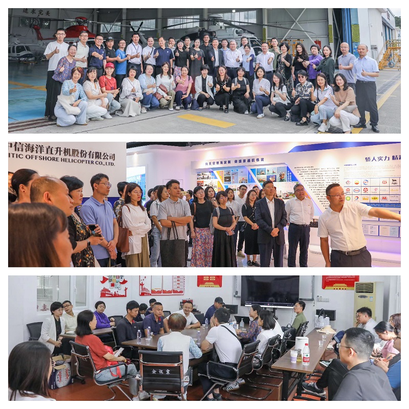当日,在解校长的带领下,调研团队首先走进中信海洋直升机股份有限公司(简称中信海直)。中信海直是国内通用航空运营领域第一且唯一一家主板上市公司,是国内通用航空的领军企业,拥有亚洲最大的民用直升机队、全国最优秀的通航飞行、机务专业人才队伍,长期以来为我国的海洋石油开发、海上救援等领域提供安全可靠的飞行服务。学校老师们有幸参观了公司的荣誉室,了解了公司自成立一路走来的辉煌成就与卓越贡献,以及在通用航空领域的深厚底蕴。随后,老师们移步到停机坪、塔台等地方,大多数参观老师是首次近距离观察各种先进的直升机,进一步加深了他们对通用航空产业实际运作的认知。最后,公司还组织了与员工的座谈会。在交流中,来自学校毕业生的员工结合了工作经验和行业见解,对母校的发展提出了宝贵建议。