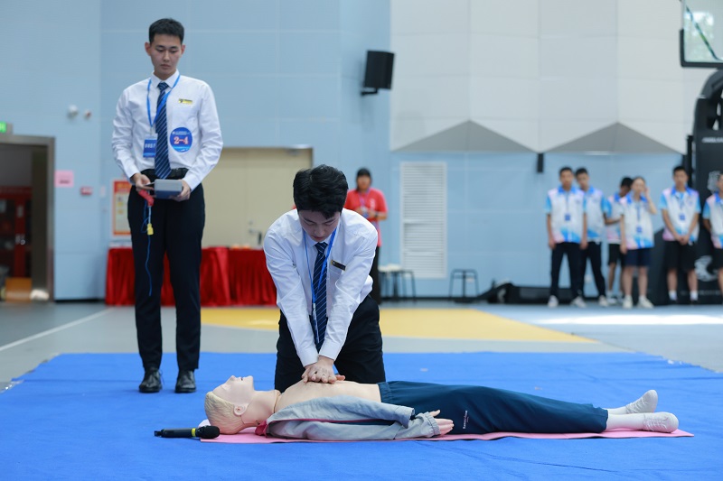 本次比赛方式为团体赛,以院校为单位组队,每支参赛队由5名参赛选手组成。比赛共设置民航理论知识问答、医疗急救实操技能、客舱灭火处置技能3个项目,全面检验参赛选手的规范化操作能力、团队协作能力、民航知识掌握水平和航空服务职业操守水平。