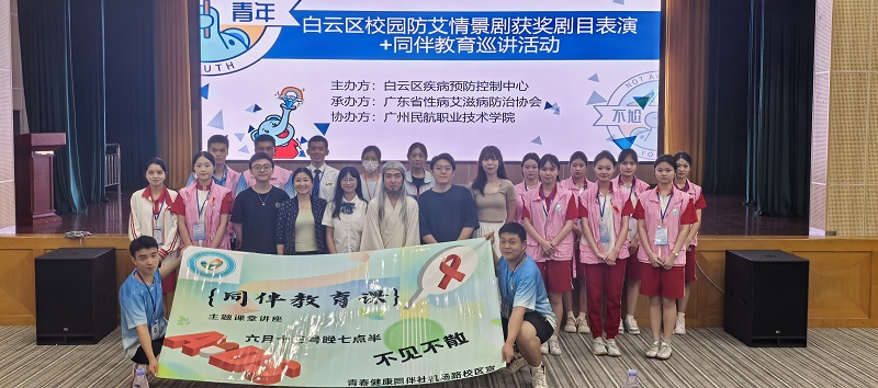 为引导青年学生正确认识艾滋病,树立“健康第一责任人”理念,有效遏制艾滋病在校园传播,6月13日晚,由白云区疾病预防控制中心主办,广东省性病艾滋病防治协会承办,我校卫生所及青春健康同伴社协办,在机场路校区百汇楼五楼报告厅举办了“白云区校园防艾情景剧获奖剧目表演+同伴教育巡讲活动”,我校500余名学生通过线上线下等方式参与了本次活动。