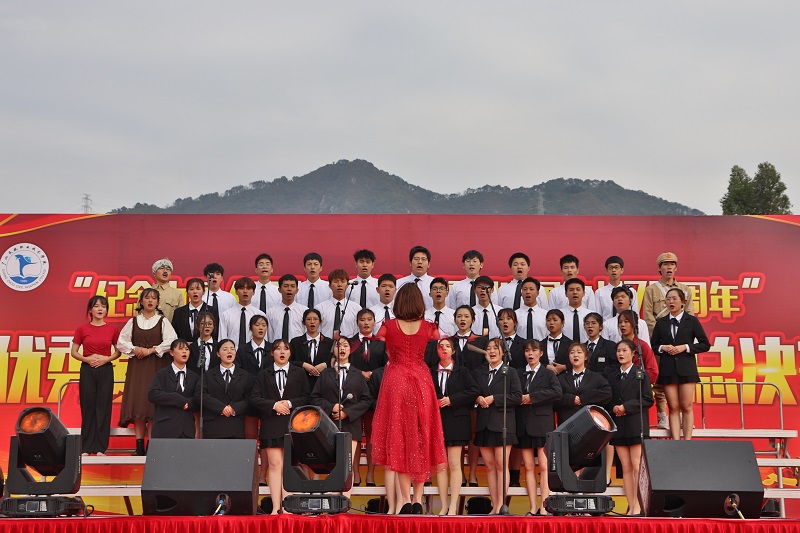 12月9日下午,航空港管理学院在花都赤坭校区田径场举办“纪念中国人民志愿军抗美援朝出国作战70周年”新生合唱比赛决赛。航空港管理学院党总支高文会书记、刘志刚副院长,学校和学院相关部门领导老师及2020级全体新生一同观看了本次比赛。大赛邀请了学校工会韩英老师和校外音乐专业老师担任评委。