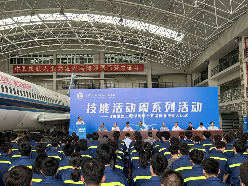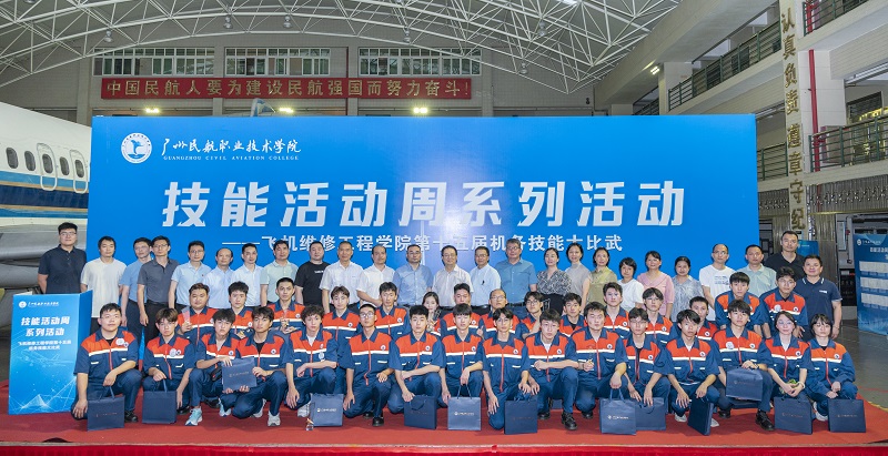 为全面贯彻落实习近平总书记对民航工作的重要指示批示精神,培养适应民用航空行业发展需要的专业技术人才,4月2日-17日,飞机维修工程学院举办“技能活动周——育技能人才 铸民航工匠”系列活动,4月17日下午,活动周中的最后一个赛事第十五届机务技能大比武决赛在白云机场校区A6机库举办,学校张昭副校长、东方航空技术有限公司广东分公司纪敏刚总经理、深圳航空有限责任公司广州分公司维修部康庆伟经理、广州飞机维修工程有限公司培训中心董红卫经理、上海科技宇航有限公司培训部陆鑫经理、南航工程技术分公司培训部李杨副经理、南航工程技术分公司技能项目部负责人魏立卿、海航航空技术有限公司广州维修中心赵峰经理、飞机维修工程学院相关领导和老师、学生代表等出席了开幕式。
