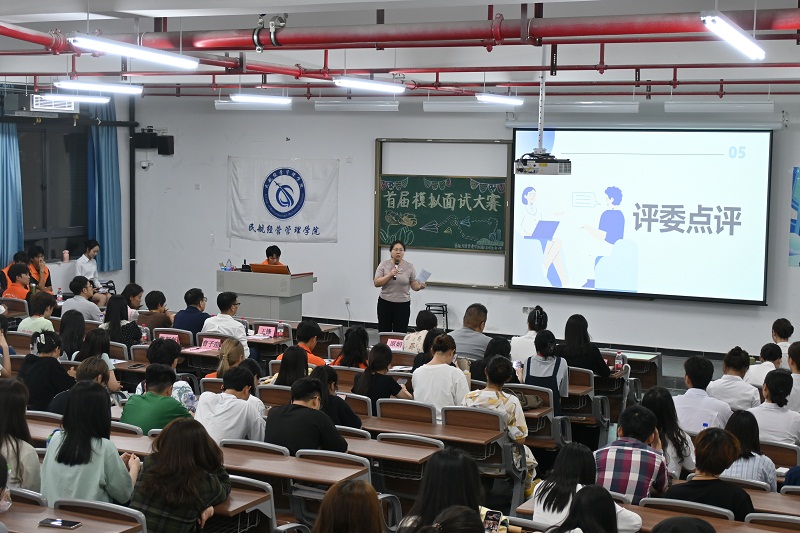 为切实提升学生的面试实战能力,深化学生的职业发展规划意识,并搭建起学校与企业之间有效沟通桥梁,民航经营管理学院于4月18日成功举办以“筑梦职场,赢在起点”为主题的首届模拟面试大赛决赛。此次活动特别邀请了来自企业的资深人力资源专家和学院的优秀校友担任评委,以确保比赛的高度真实性和专业性。