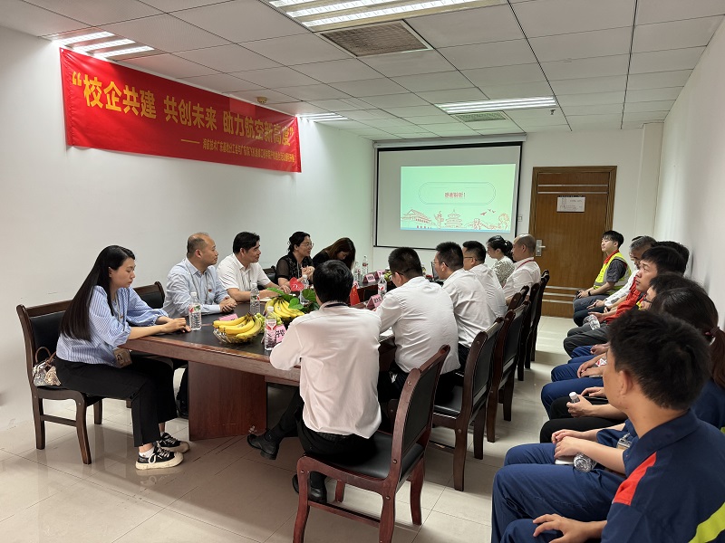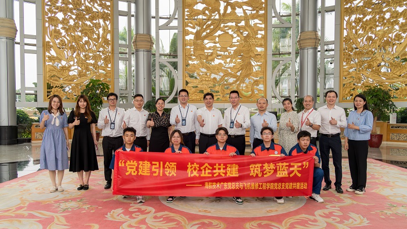 4月24日下午,飞机维修工程学院党总支部方松书记、黄白玲副书记、副院长及陆轶副院长带队学院师生党员一行前往海航技术广东维修基地,与海航技术广东党总支部开展“党建引领 校企共建 筑梦蓝天”为主题的党建共建活动。海航技术广东党总支书记、副总监林培良,海航技术广东党总支副书记朱金辉,海航技术广东维修基地总监谢大志、广东维修基地党群中心经理叶璐、广东维修基地综合管理中心经理刘煜成、广东维修基地党总支部纪检委员赵子钦、广州维修中心经理赵峰、广州维修中心副经理何永华,飞机维修工程学院学生党支部书记及学生党员代表参加了本次活动。