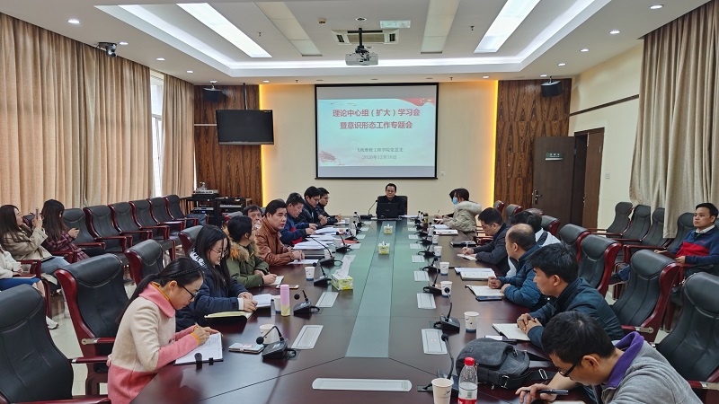 12月16日下午,飞机维修工程学院党总支部在白云机场校区A1-105会议室召开理论中心组(扩大)学习会暨意识形态工作专题会。学院党总支部中心组成员、下设党支部书记、教研室主任、三办一中心行政人员、全体辅导员参加了会议。会议由党总支部方松书记主持。